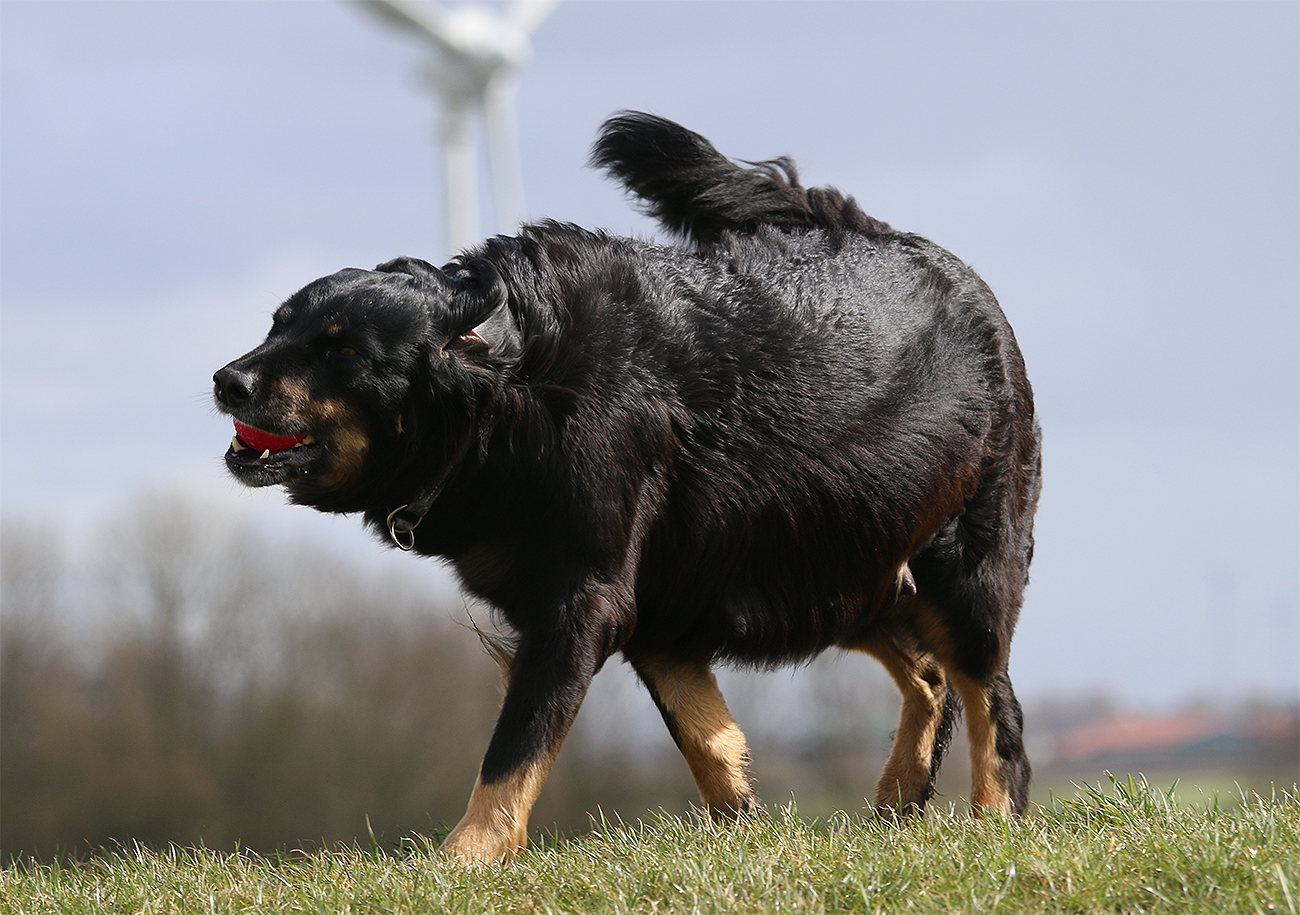 Was die Bewegung angeht, so ist Enja immer noch sehr gerne mit mir unterwegs. Sie ist zwar nicht mehr die schnellste Hovi-Maus aber ihre sechs, sieben Kilometer ist sie täglich noch in der ostfriesischen Prärie unterwegs.