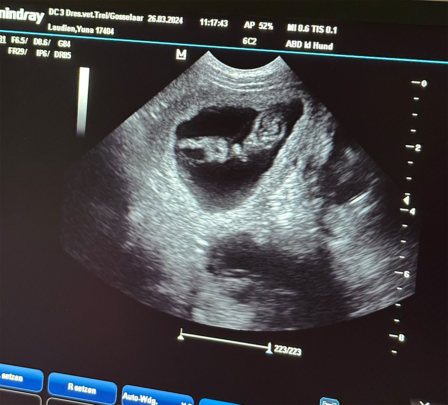 Heute war also der Tag der Tage. Der Tag an dem man Gewissheit bekommt, ob die Hündin aufgenommen hat oder nicht.