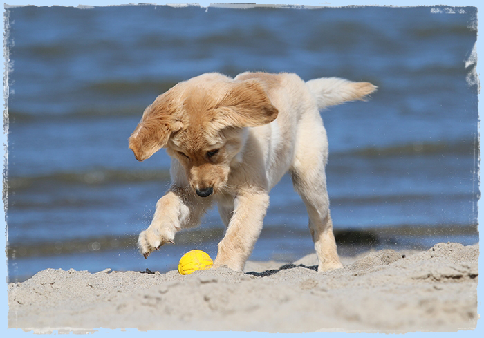 Ihre Züchterin Johanna Sarkkinen und das gesamte Hofmacher-Rudel haben sich all die Wochen ganz wunderbar um die kleine Yuna gekümmert und wir sind froh, dass sie nun ein Teil unserer Familie ist.
