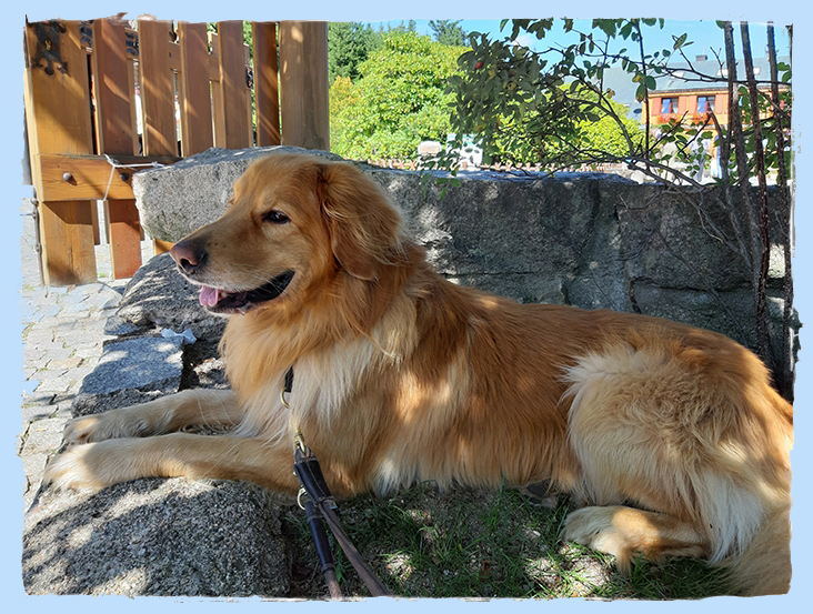 Atwood ist ein sehr ausgeglichener, freundlicher Hund der uns überall hin begleitet, ob zum wandern, radfahren,